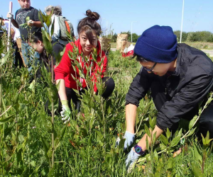 Friends of Five Creeks volunteers have worked on the shoreline on both sides of the mouth of Strawberry Creek since the late 1990s, before the shoreline was made part of the then-new McLaughlin Eastshore State Park, managed by the East Bay Regional Park District. We have controlled serious invaders that threaten habitat Bay-wide, planted varied natives and by removing weeds made space for natives to return on their own, and contributed in many ways to making this a welcoming for people and wildlife.