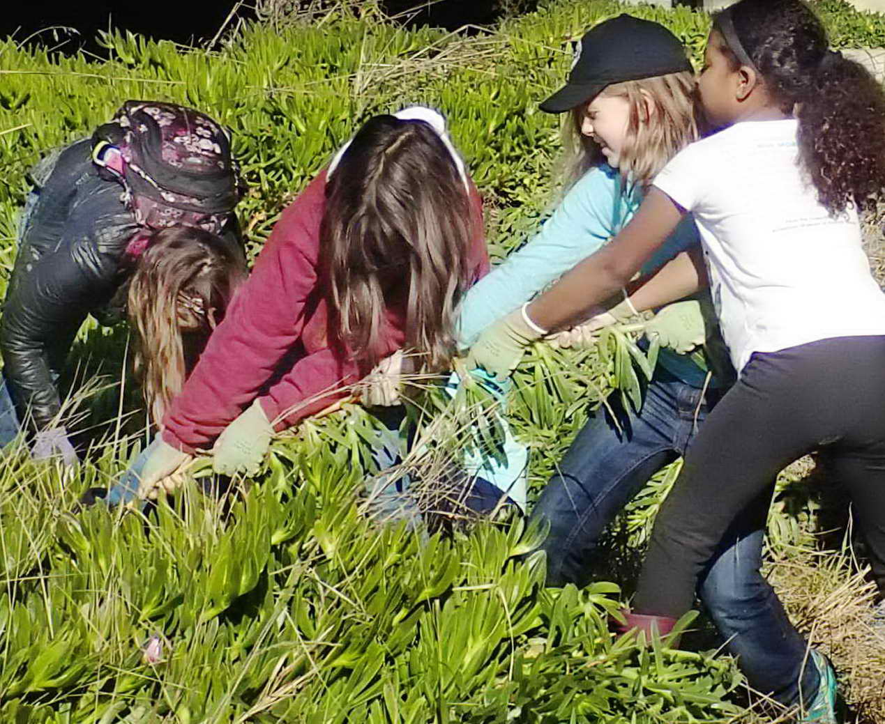 When the Park District began developing the Brickyard area, where we had long fought pepperweed, we worked for a few years along the curving, south-facing Brickyard Beach. Kids especially enjoyed pulling up the thick ice plant that covered much of the wide back beach. But the District’s attempt to re-seed the rest of the “Brickyard” area with native grasses came up almost entirely in weeds. The District closed the area for an additional two years, changed its plan, and used herbicide to create some areas with natives. Much of the progress we had made on the beach was lost while we were shut out. We have not returned.