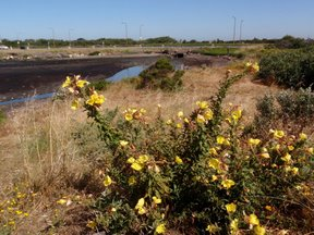 Volunteers love working at the waterfront, so work on the beach mushroomed. We established a now dense cover of native shrubs on the steep south edge of the beach. A Boy Scout Eagle project built steps. Big work parties of young folks removed ice plant that covered much of the beach. This was followed by years of pulling and digging Pampas grass, French broom, thistles, poison hemlock, fennel, blackberry, and more. In the areas cleared of weeds, we planted creeping wildrye and beach evening primrose – which spread rapidly — along with other natives. Others washed in or sprang up on their own: tules, gum plant, native Limonium, salt marsh heliotrope, and more. As saltwater encroaches, some of these are now dying, along with the native willows close to the shoreline.